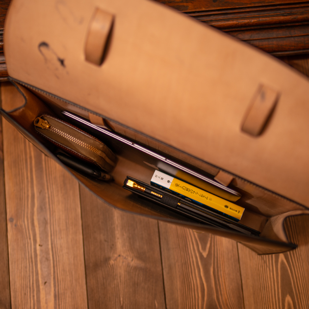 まだまだ入りますが、この程度の内容にしていただくと鞄の見栄えが最もカッコイイ。