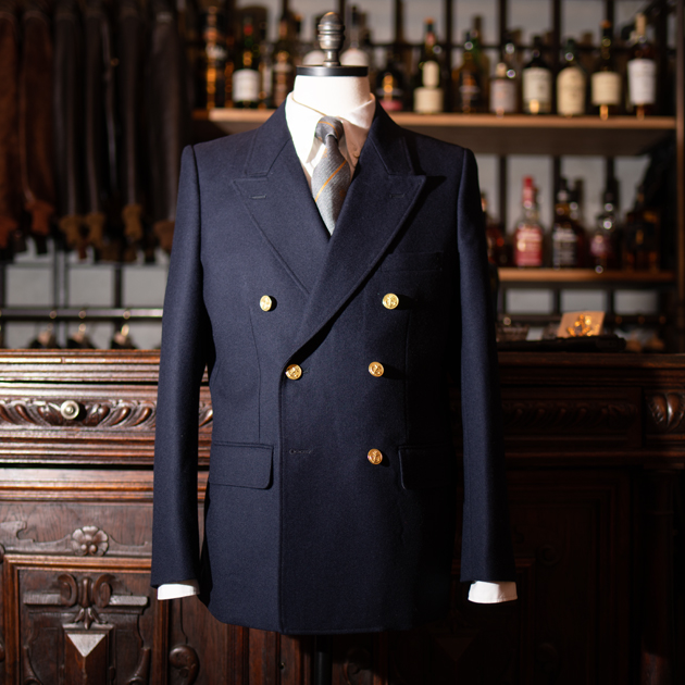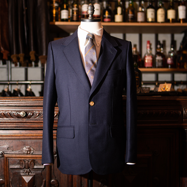 今回のモデルは、好評いただいているNavy Blazerのモデルはそのままに、ファブリックのみ"DORMEIUL/ドーメル"社のN.O.S(New Old Stock)ファブリックを使用した一着。
