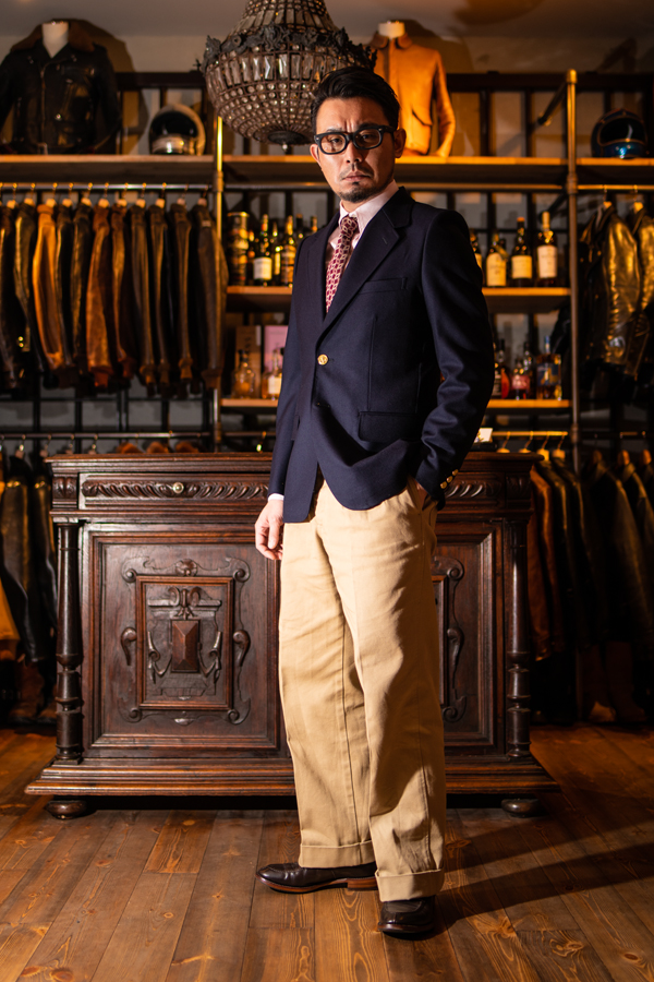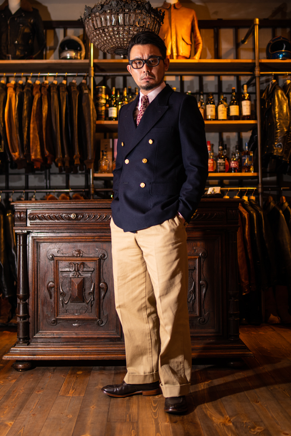 前出のSingle Blazerと同様のアイテムでコーディネートしておりますが、Reeferになると雰囲気もガラッと変わります。
