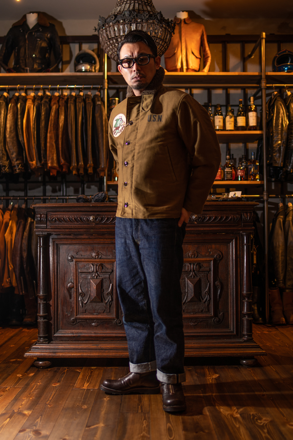 このゴートスキンの雰囲気が豪快なシボ感を持っており、これから入荷する予定のType G-1なんかとコーディネートしていただくと最高にカッコイイかと思われます。