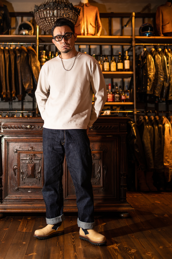 しっかりと目が詰まった生地ながら、スウェットより薄手で糸本来の持つ滑らかさ・柔らかさによる着心地の良さが特徴。