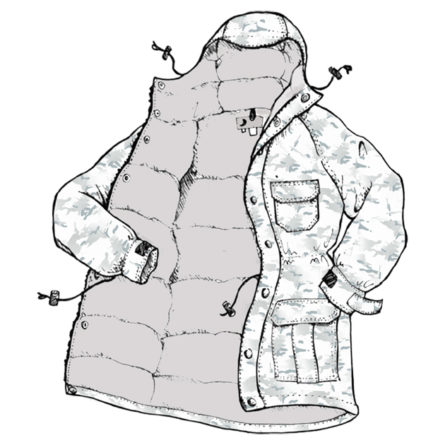 Crescent Down Worksのホームページでモデルさんが着用していた"ARCTIC MONTAGNE PARKA"を画像加工してみたものです。