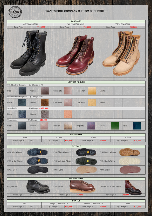 日本初上陸! FRANK'S BOOTS取り扱い開始に伴いカスタムオーダー受注会を開催いたします!