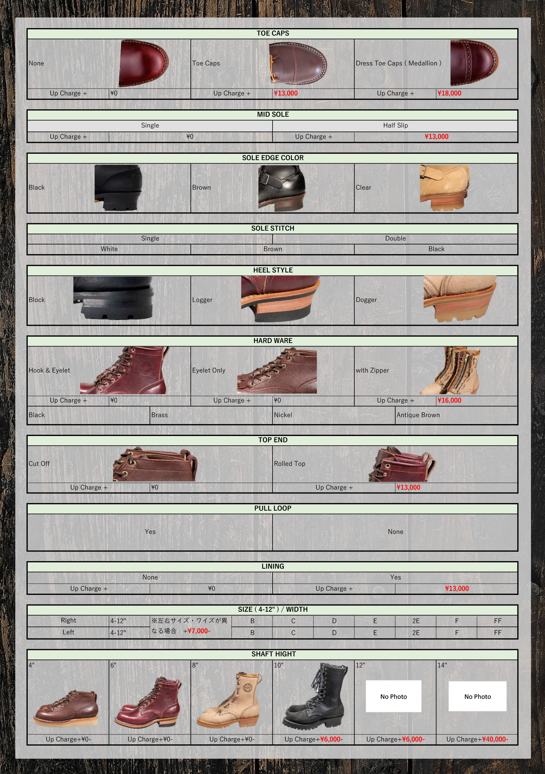 と、今までWHITE'S BOOTSやNICK’S BOOTSでカスタムオーダーいただいた事のあるお客様には馴染み深い内容となっております。