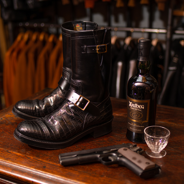 最近はクロコダイルを使用したエンジニアブーツが静かなブームとなっており、価格的にも良心的であると評価をいただいております。