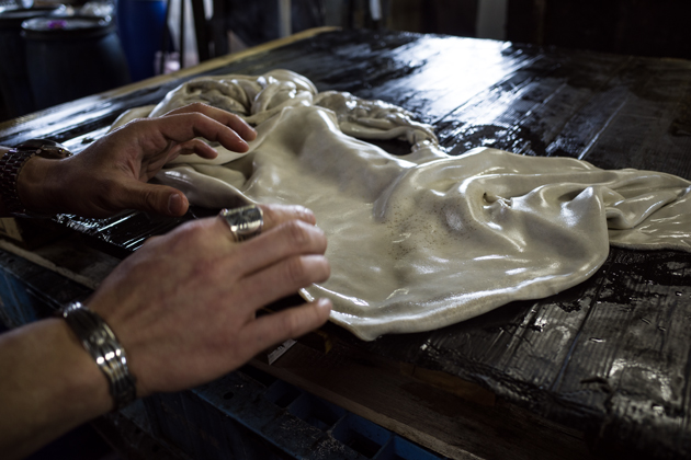 こちらは、今回のオリジナルレザーの最終仕上げ直前の様子。