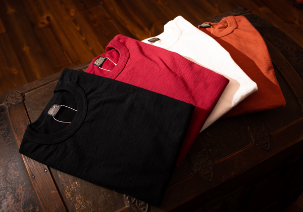 現在和歌山県だけに残る旧式吊編機の可能性を探り、使用する糸質を追求し、出来上がったTシャツは正に次の主役に相応しい。