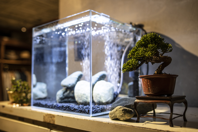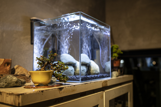 移転して来て、少し店舗の広さ的にも余裕が出来るという事で、いつかはやりたいと思っていた水槽の設置。