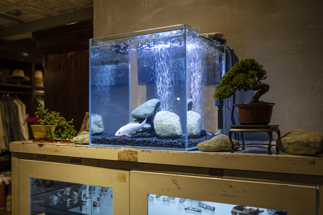 先日ご紹介した水槽エリアに、先行して一匹入りました!