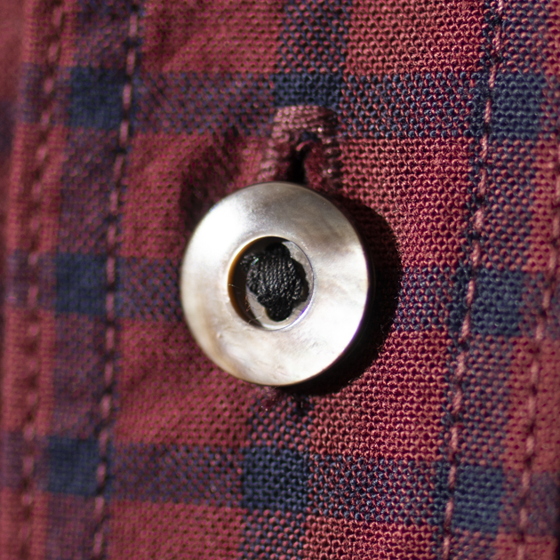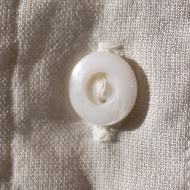 こちらに使用されるボタンは白蝶貝、生地感とマッチしておりますね。