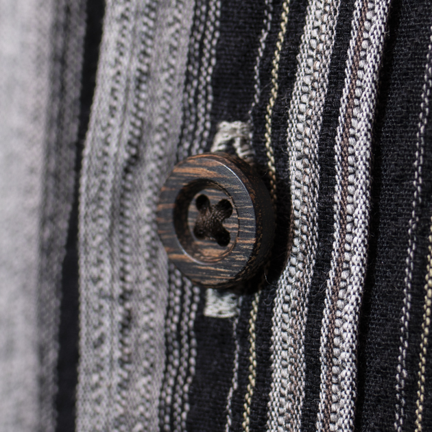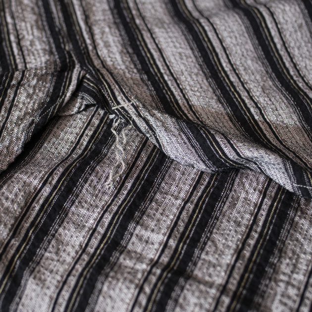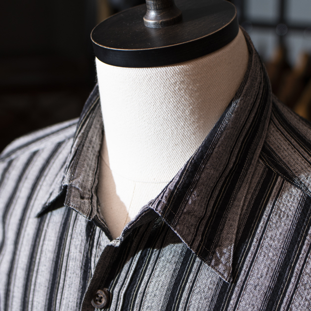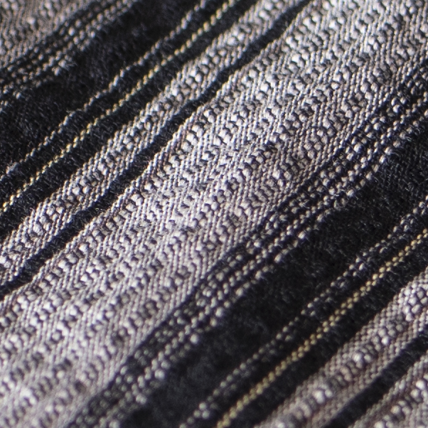 今回の生地は、基本的な配色として"黒灰縞"としておりますものの、日本の生地らしい複雑な構成となっているのも特徴です。