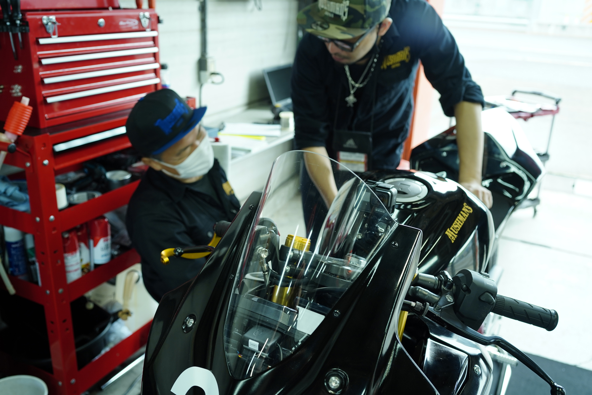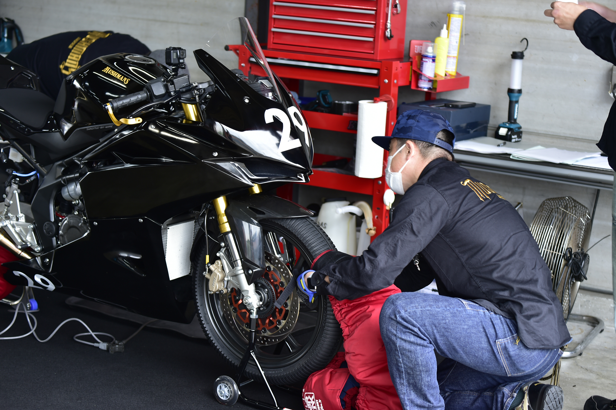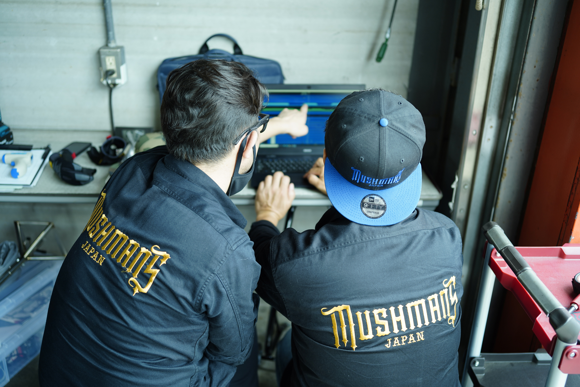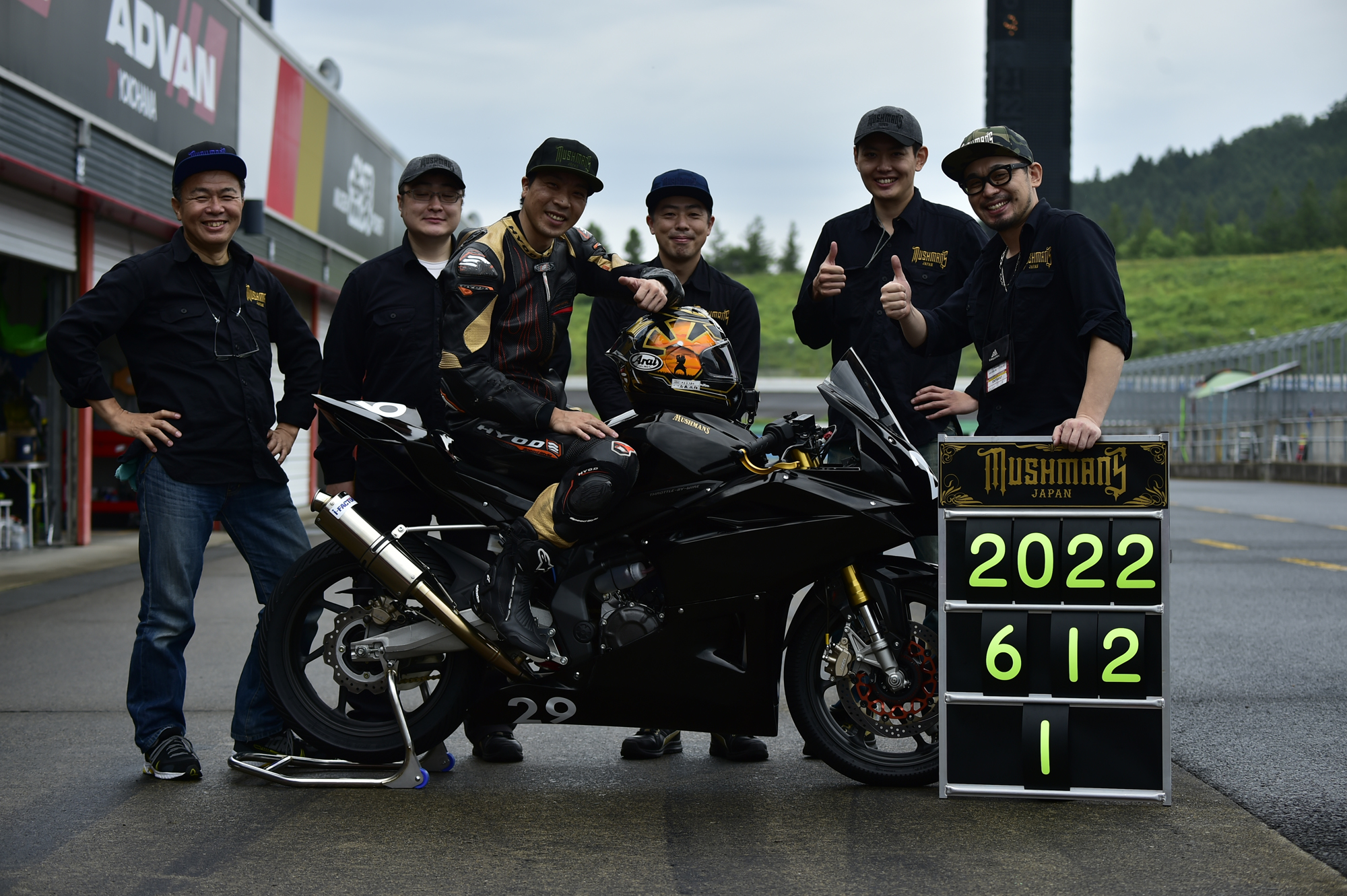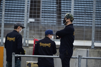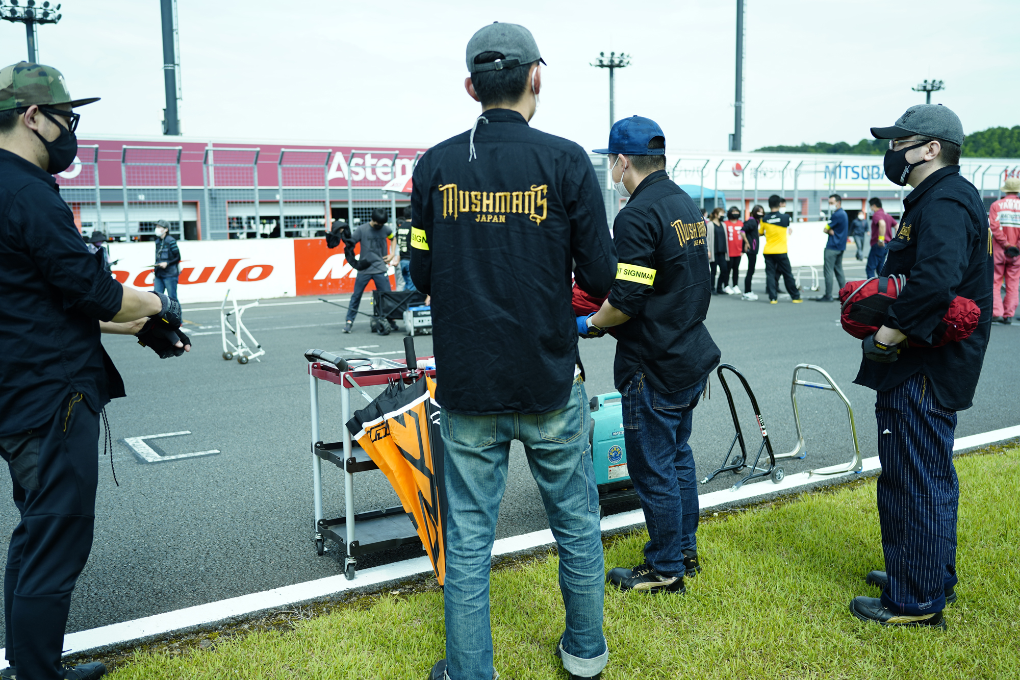 最左の松田氏は以前私がお世話になったベテラン、今回MUSHMANS Racing Teamのアドバイザーに迎え、厳しく指導いただく。