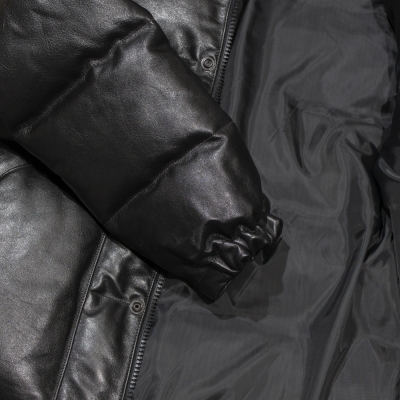 今回ダウンベストを生産するにあたり、革、中綿(ダウン)、パターンの全てに拘り、一つずつの素材に時間をかけて仕上げている。