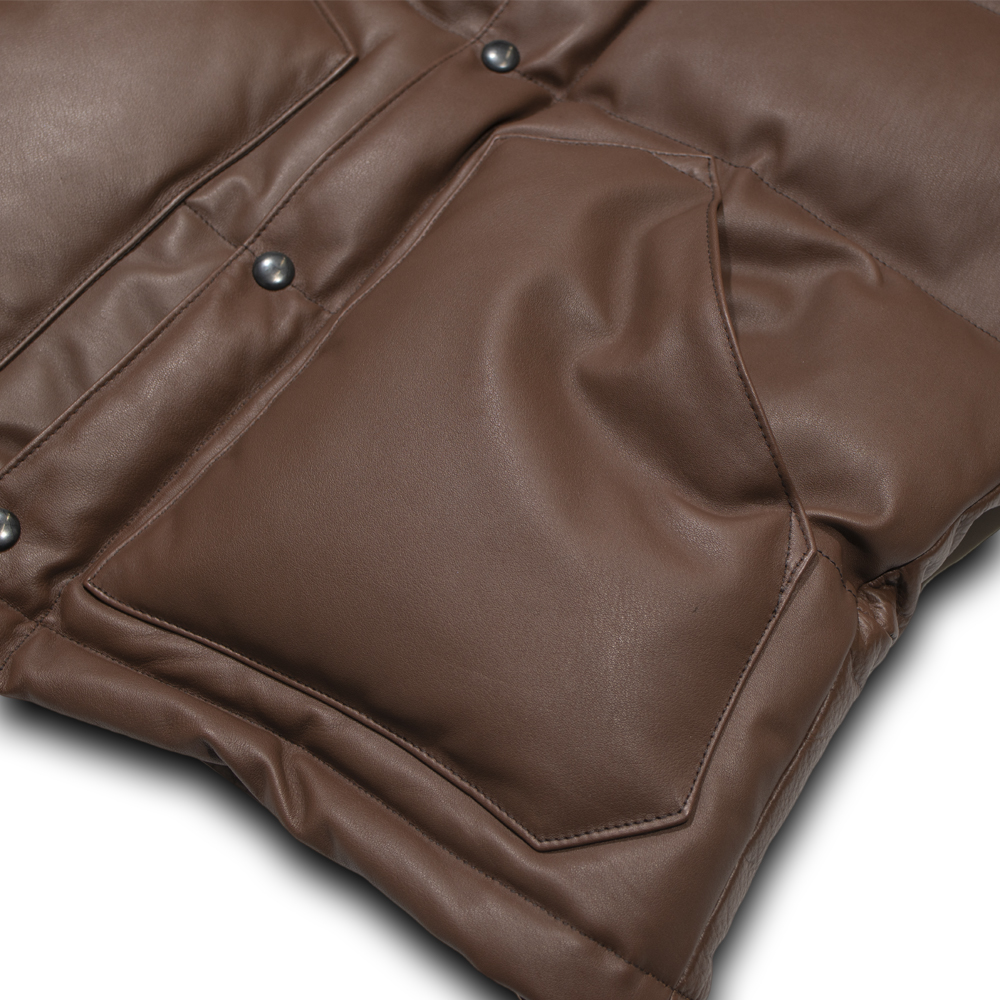 今回ダウンベストを生産するにあたり、革、中綿(ダウン)、パターンの全てに拘り、一つずつの素材に時間をかけて仕上げている。
