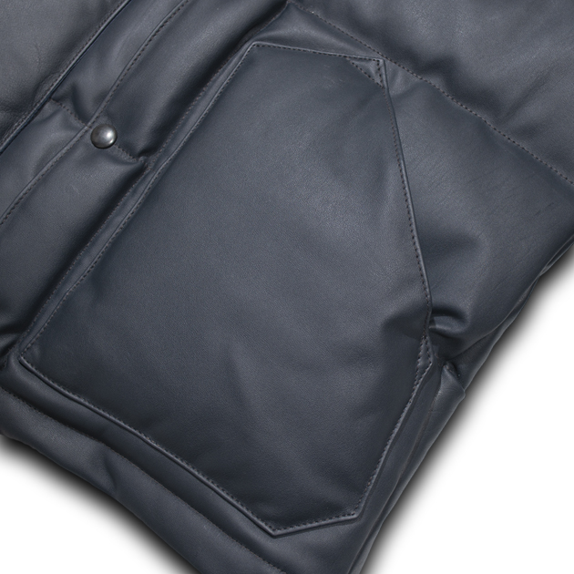 今回ダウンベストを生産するにあたり、革、中綿(ダウン)、パターンの全てに拘り、一つずつの素材に時間をかけて仕上げている。