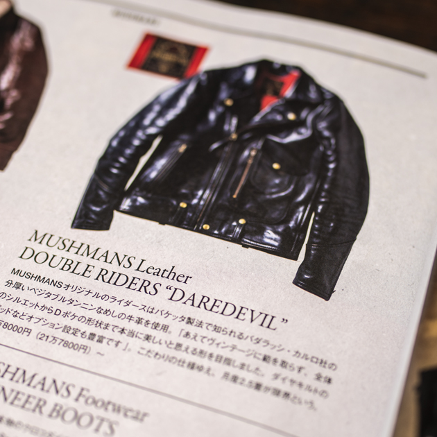 基本的にオリジナルと別注アイテムを中心にという事で、MUSHMANSを代表するオリジナルレザージャケットやブーツが掲載されております。