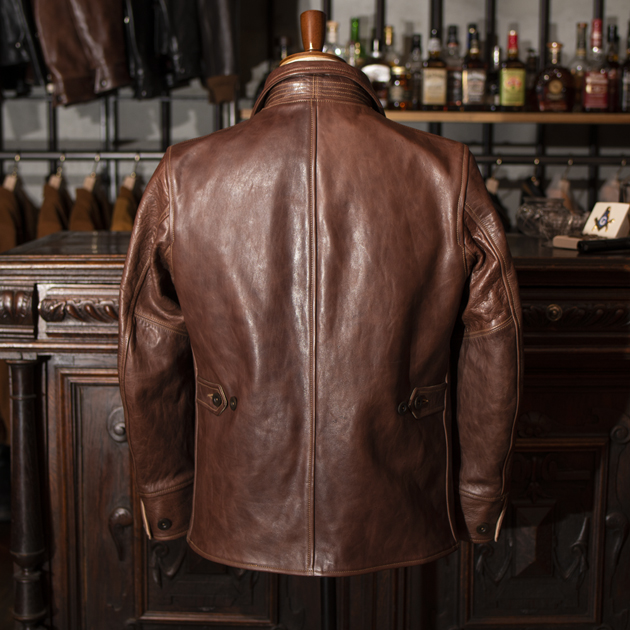 シンプルなディテール故に、素材感が引き立つモデルであり、レザーコートを着用している満足感を存分に味わう事が出来る事で人気のモデル。