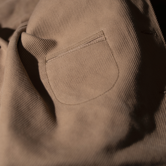 ライニングにはあえてウール素材を使用せず、極めて厚手のコットンツイルを採用しました。