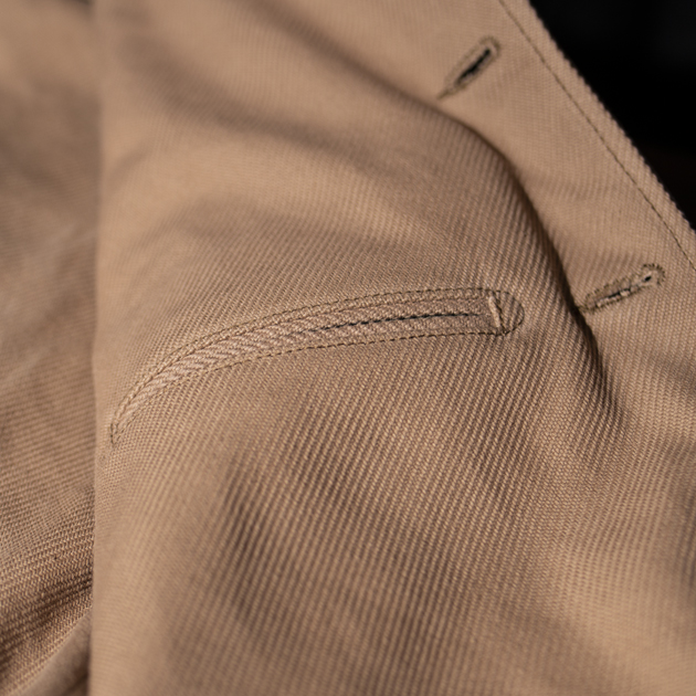 両玉縁のポケットが三箇所に設けられ、20年代の雰囲気を存分に楽しんでいただけます。