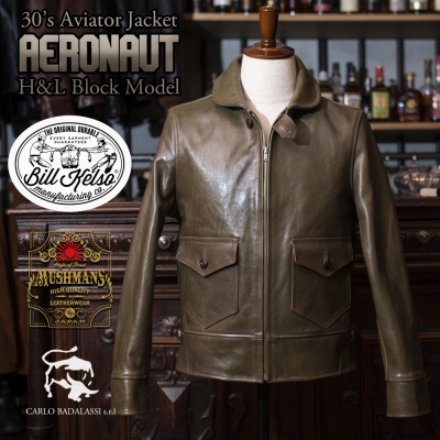 Bill Kelso×MUSHMANS 30's Aviator Jacket "Aeronaut" BADALASSI Carlo s.r.l Nappa Lux Grigio