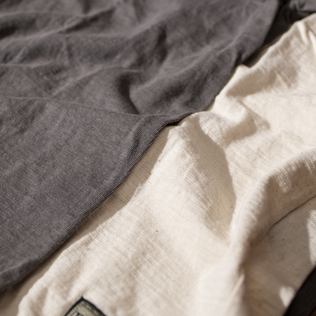 和歌山の旧式吊編機によって、ゆっくりと糸を自然落下させ、空気を含みながら優しく編み立てた丸胴ボディ。