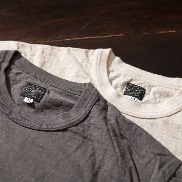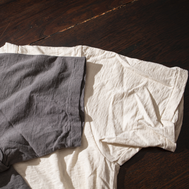 ムラ糸表面を焼き加工したスラブ&シェイプTee。