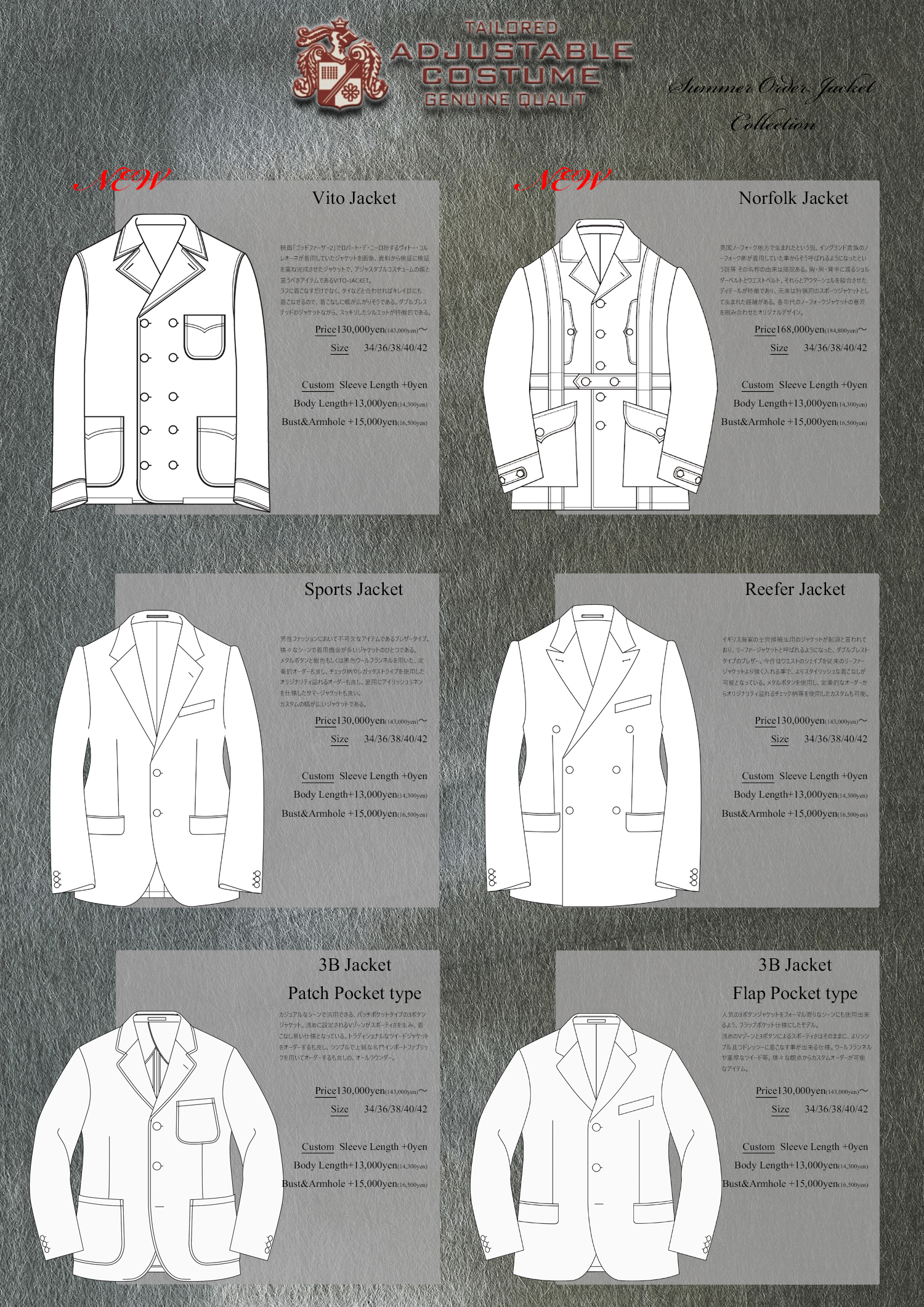 また、昨年コレクションから追加された永遠のトラディショナルアイテム『ブレザー』がオーダージャケットのベースモデルに追加されており、こちらのベースモデルを使用して、夏用リネンブレザーのオーダー等は今回の目玉となる事と思います。