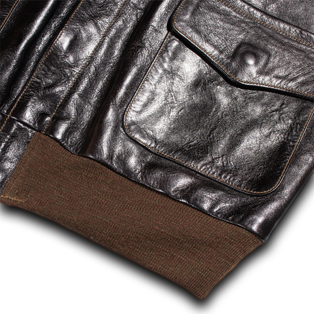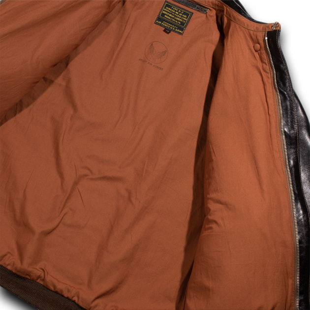 A-2ジャケットは馬革を使用すること、明るい茶色の裏地、襟はレザー、茶色の袖と裾のニット、ジッパーによる前開きと言う大変シンプルなデザインが採用され、多くのコントラクター(納入業者)により製造されました。