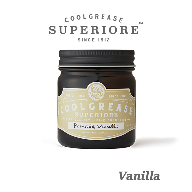 昔ながらのロングセラー水性ポマードCOOL GREASEの質感をそのままに、優しく甘いバニラの香りと艶が特徴。