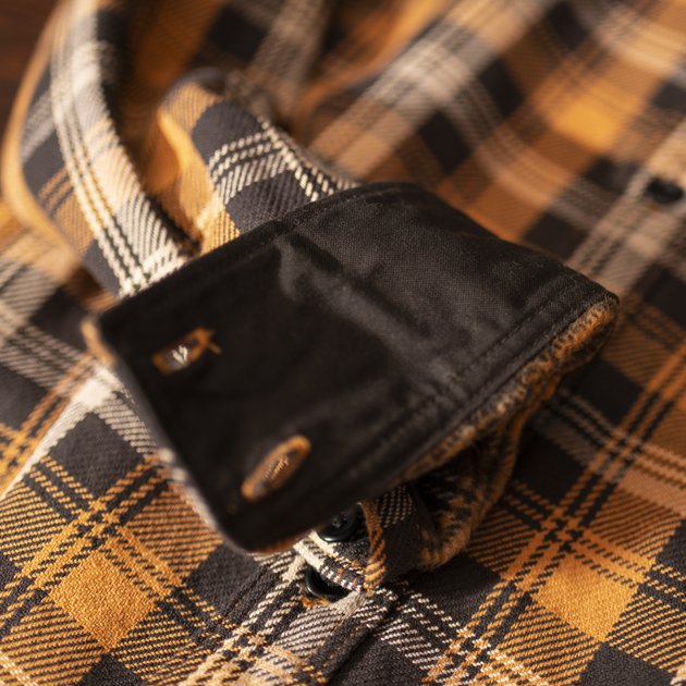 肩部とカフス裏にはダック地で補強。ワークシャツとしての堅牢さもございます。