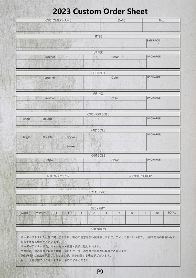 ↑↑こちらがオーダーシートとなりますので、遠方のお客様で御来店が難しい方は、このシートに仕様を記入してFAXもしくはメールで送信いただければ、オーダー受付が可能です。