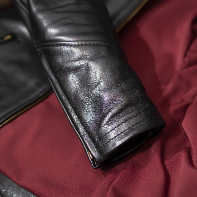 やはりこちらのWIRED-χ-も、DAREDEVIL同様に革厚が1.4mm近いとは思えない、実に優雅な着用感を実現しており、フルモデルチェンジ後のDAREDEVILに通ずる、素晴らしいパターンによるものであると感じる。また縫製技術の高さによって、縫製誤差が少ないという事も起因するだろう。