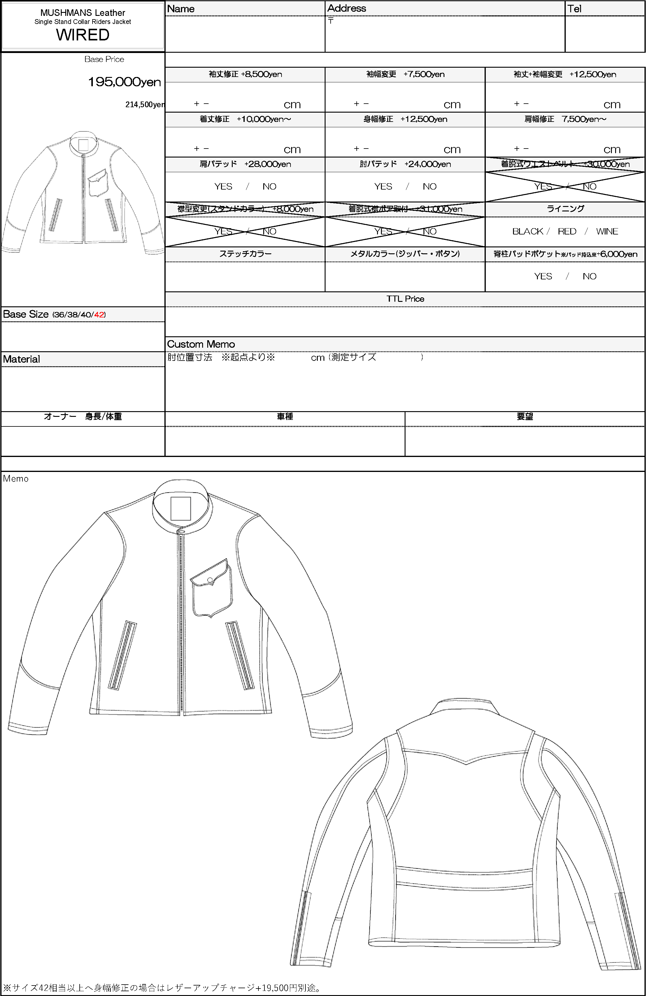 今回の受注会でリリースいたしますモデルは、それぞれ以下のオーダーシートを使用してオーダーを受付いたします。