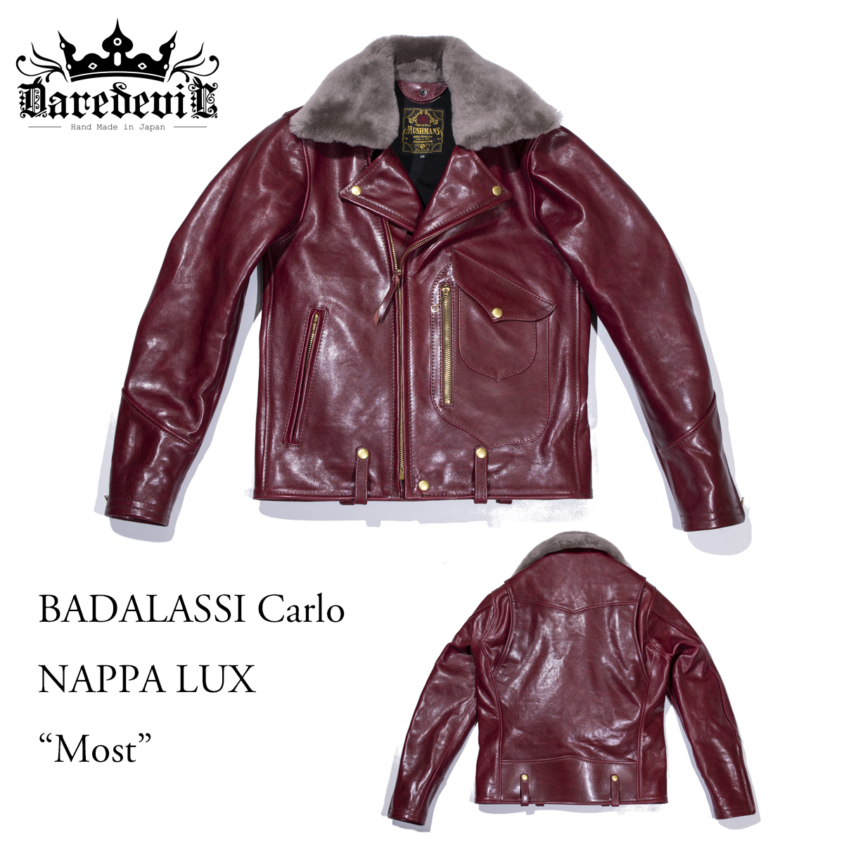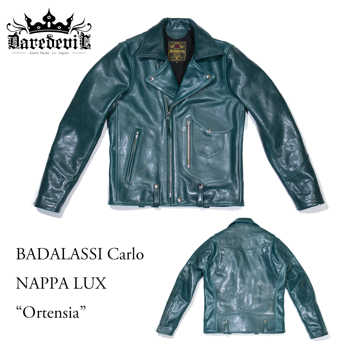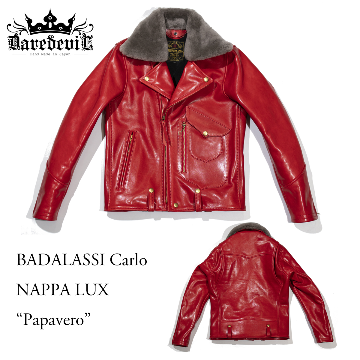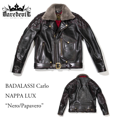 世間ではブルー系のダブルライダースが比較的認知されており、若干流行りの雰囲気がございますが、やはりBADALASSIレザーを使用すると発するオーラが違います。