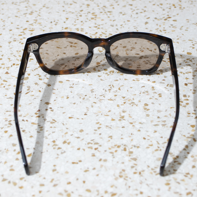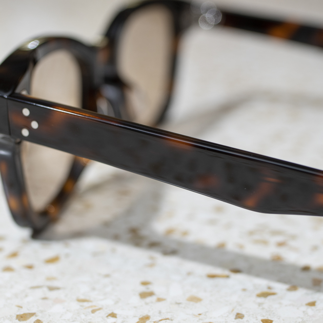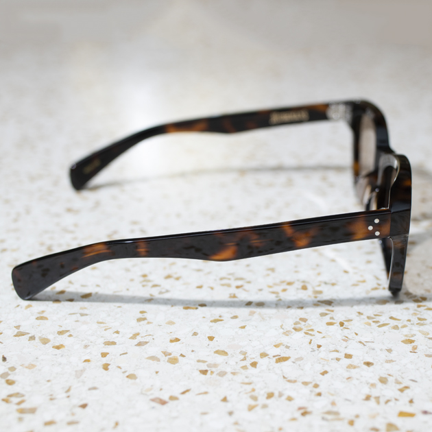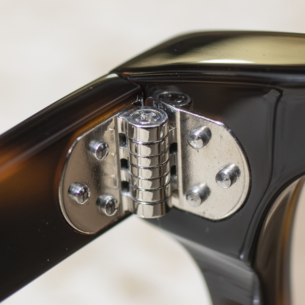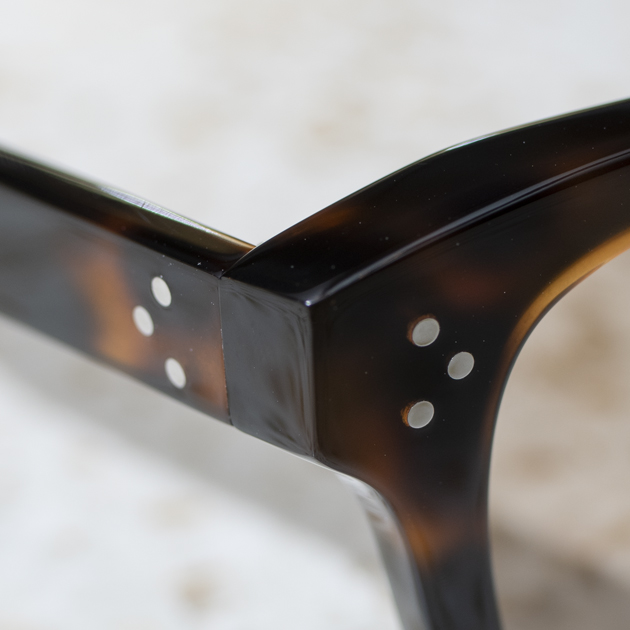 美しいエッジを演出し、さらに緻密な磨き仕上げを行う事で、アイウェアとしての完成度が高い。