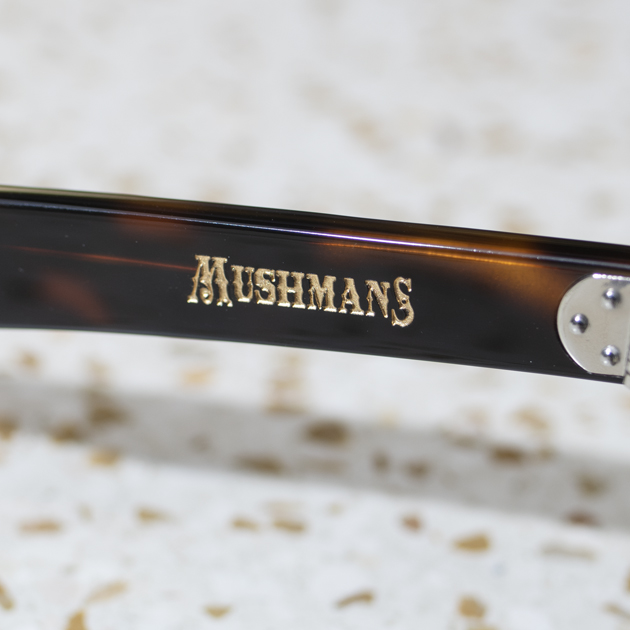 テンプルに入るMUSHMANS Logoは、シルクスクリーンプリントではなく、レーザー刻印+ゴールド着色としております。