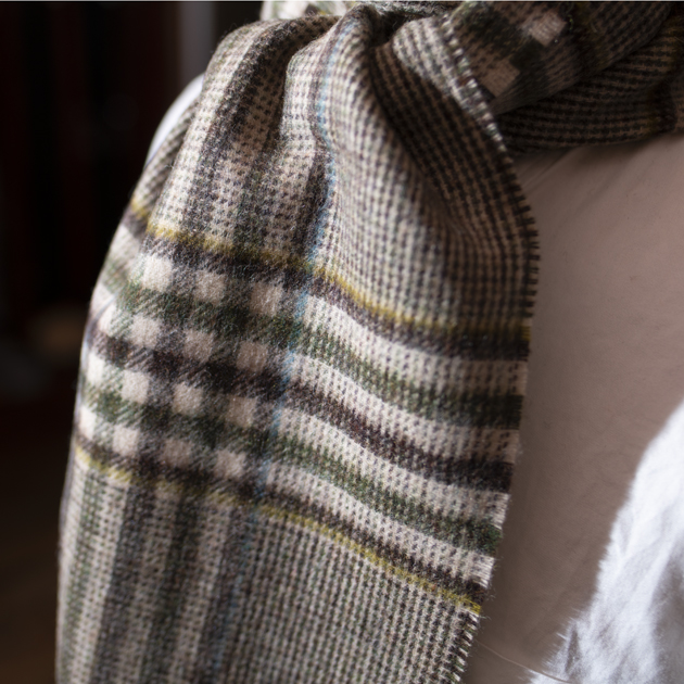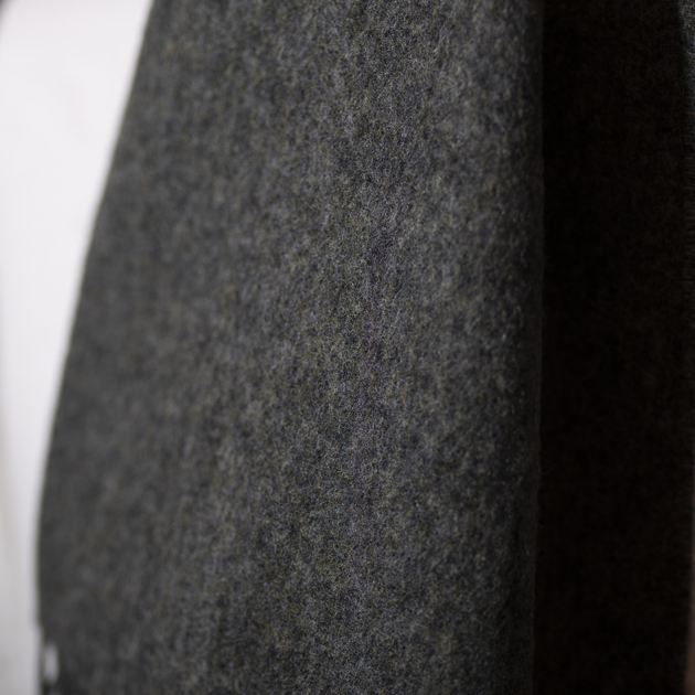 全体の雰囲気はグレーですが、よく御覧いただくとチャコール・グレー・オリーブの糸を掛け合わせて深い発色を実現。