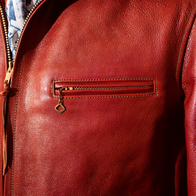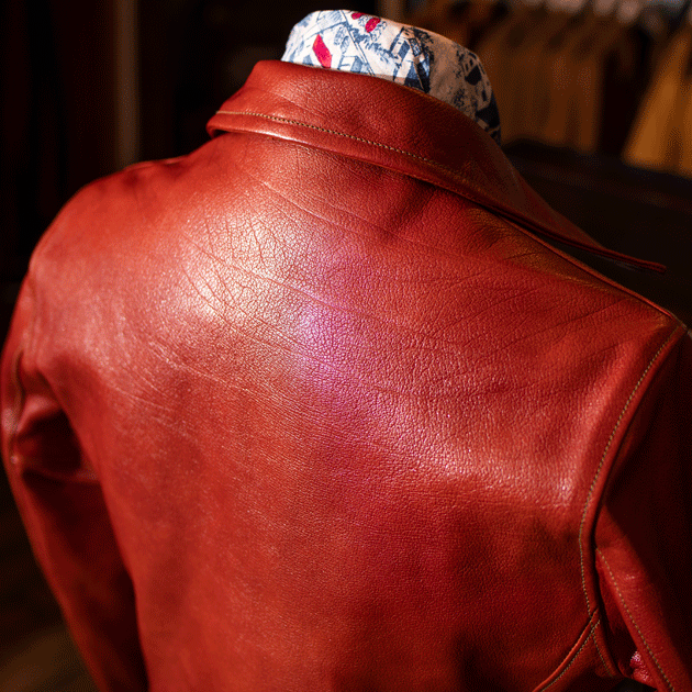 馬革や牛革には無い、スジとシボのコントラストが魅力で、着込む程に浮き出すその表情は、レザー愛好家を魅了するものがございます。