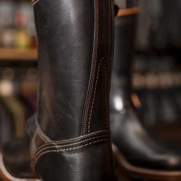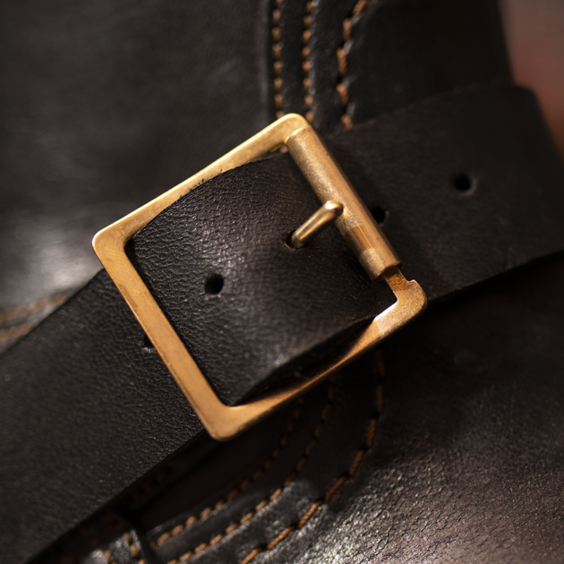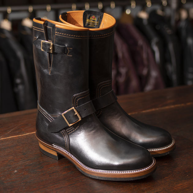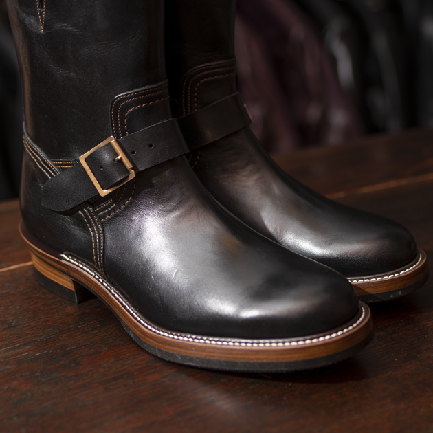 芯通しのブラックである事で、黒々としたエンジニアブーツらしい凛々しさを得ております。