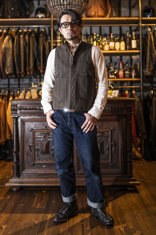 コットン100%ながら、オールドなスーツ地にも見えるヴィンテージライクなファブリックのチョイスも絶妙。