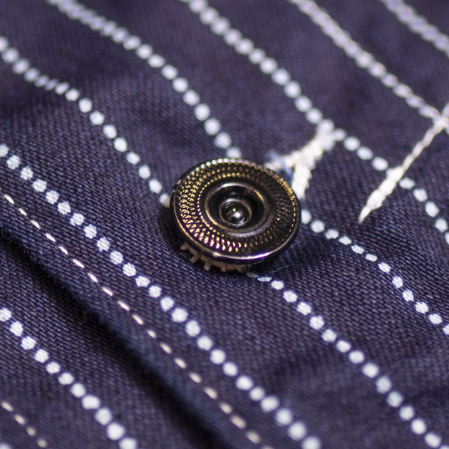 ブラックアウトされたメタルリベットボタンも質実剛健なオーラを出します。