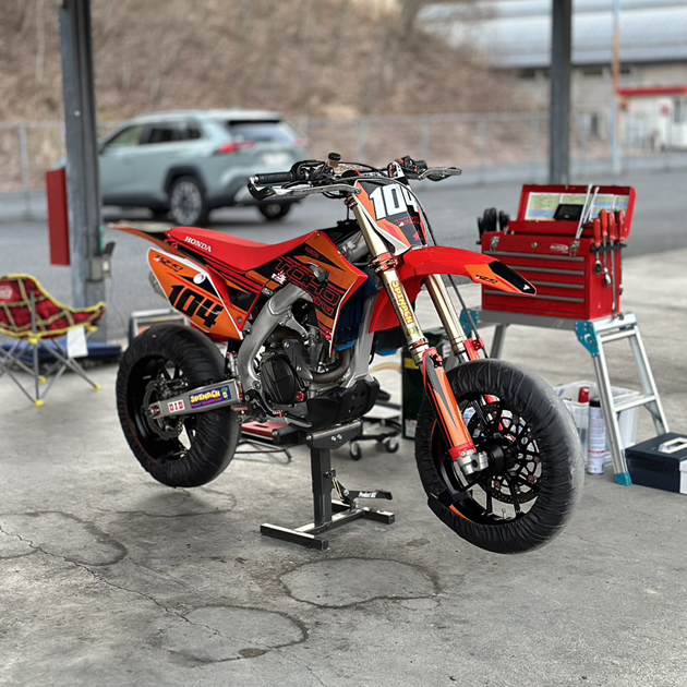 こちら新たに導入したCRF450Rのスーパーモト仕様。
