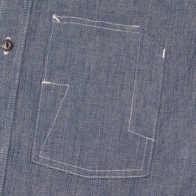 懐中時計を収める目的で付けられたウォッチポケットは一筆で縫製され、ペン差しも付いてワークに適したポケット。