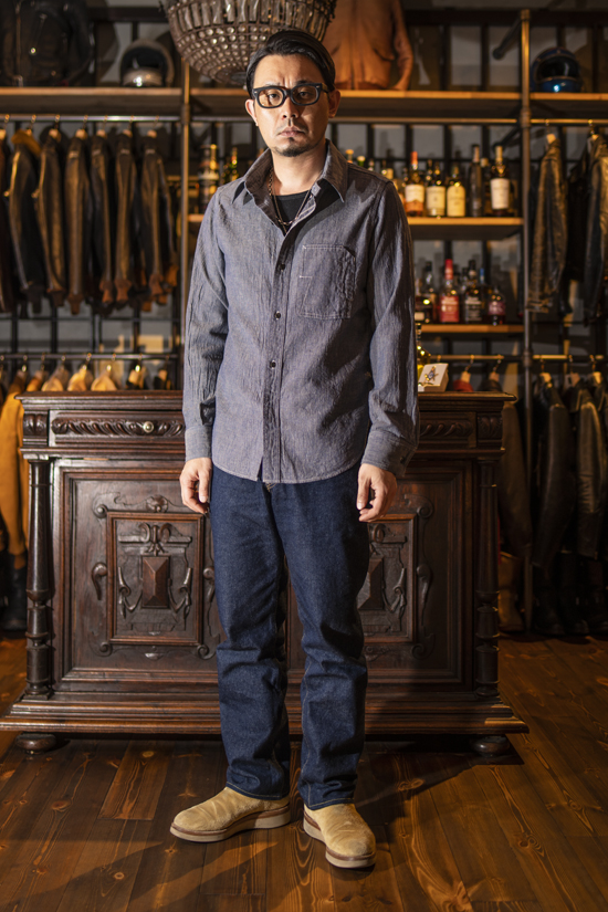 1920年代をソースにしたレイルロードワークウェアの襟はワークながら端正な顔も併せ持っています。