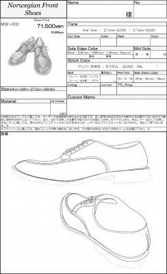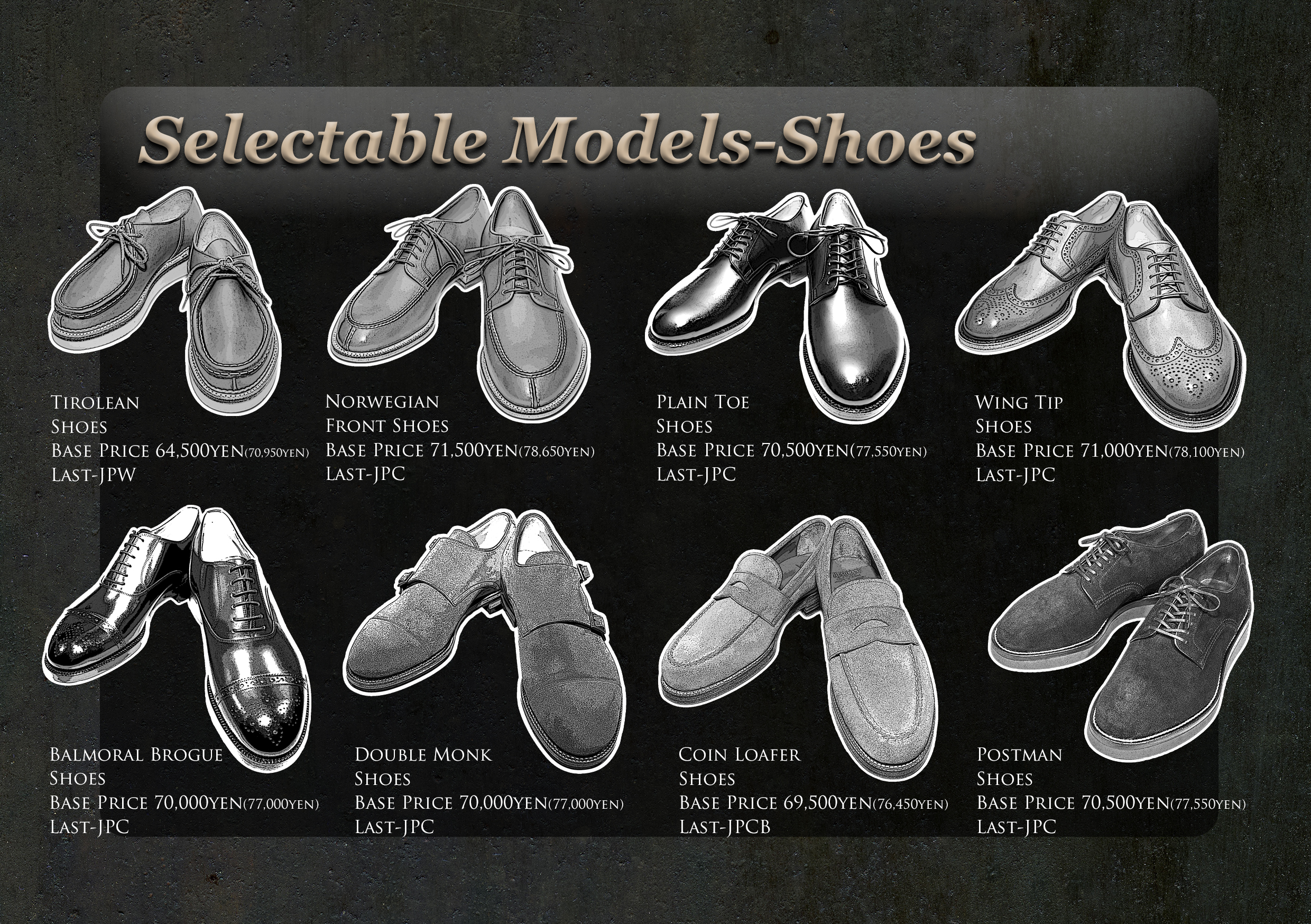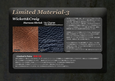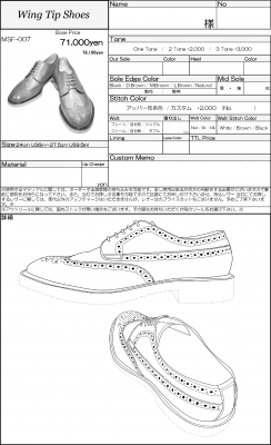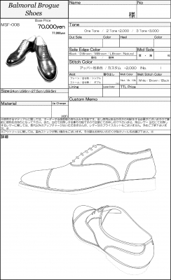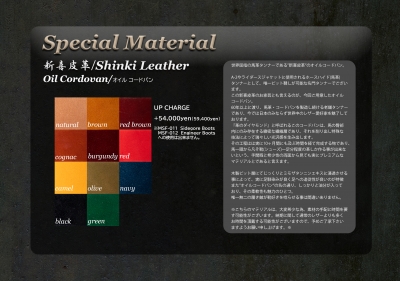 既にご用意出来ないマテリアルも存在しますが、この画像の中からお気に入りの一足を見つけて、それをベースに細部を変更するという事も可能です。