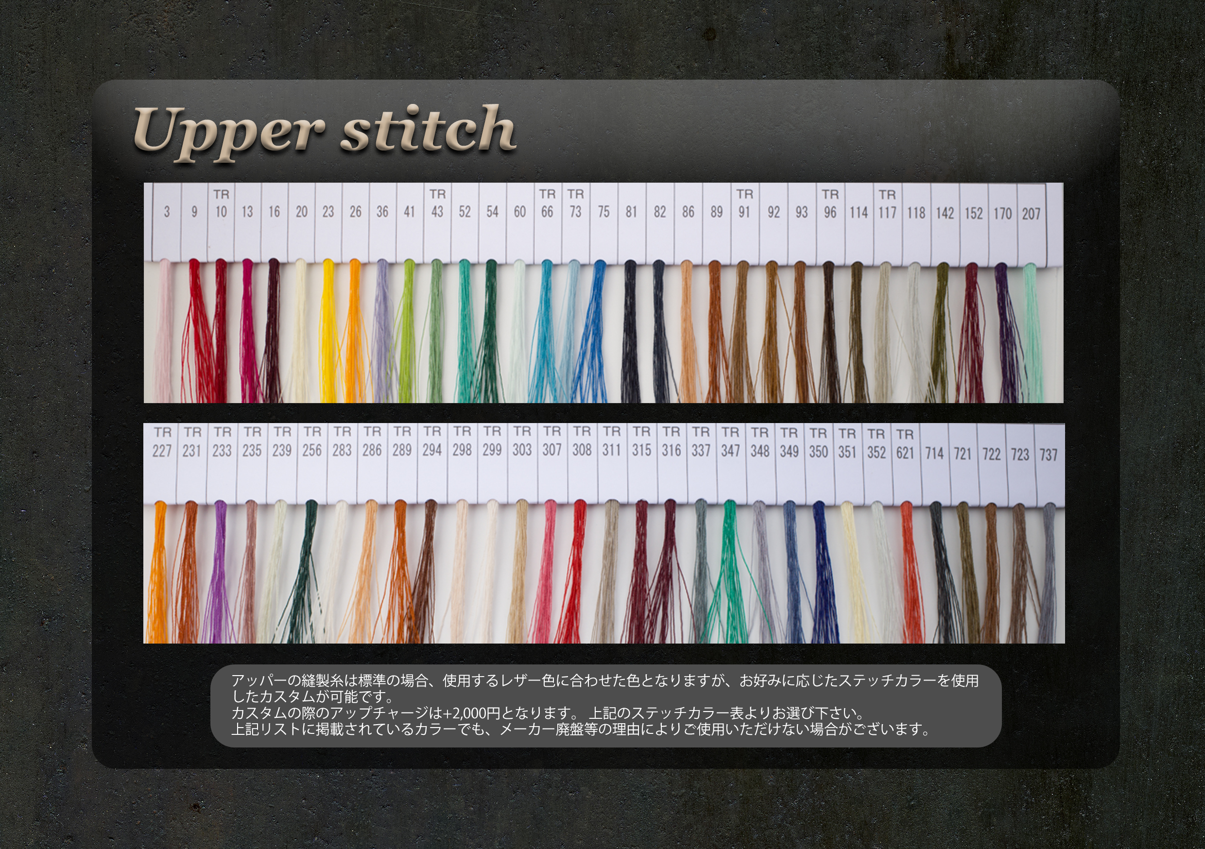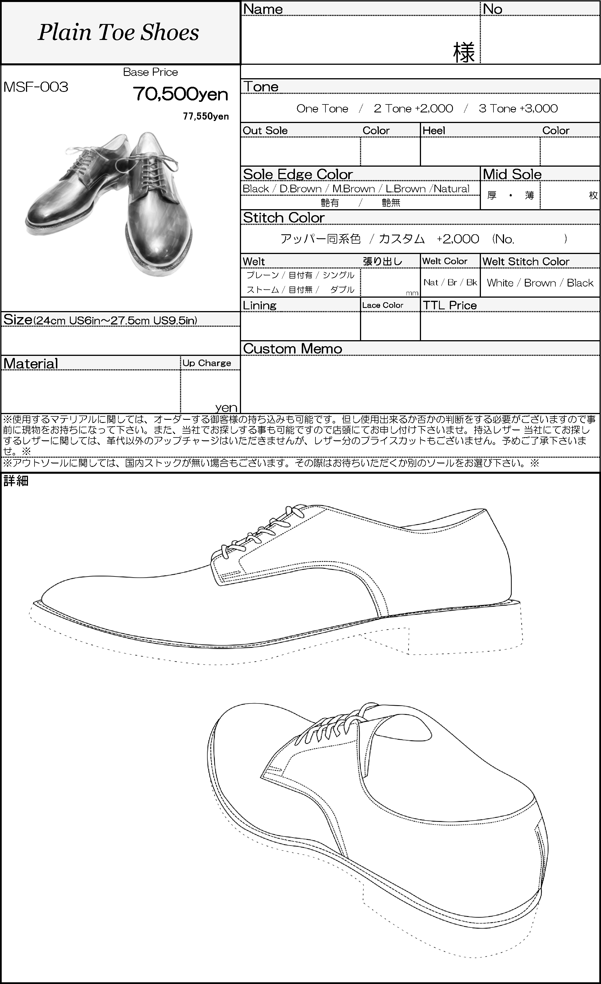 仕様が似ている物や、納品日数がタイトで撮影出来なかった物等は掲載出来ておりませんが、オーダーの際の参考になるかと思います。