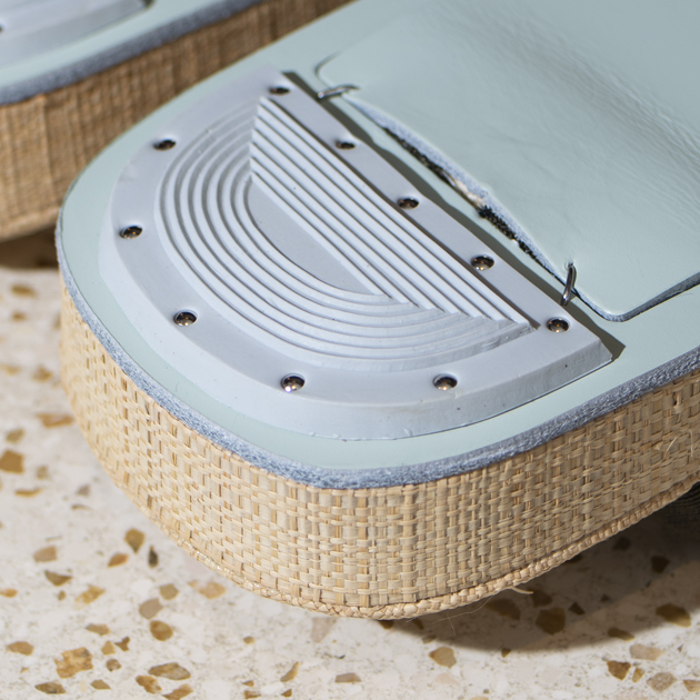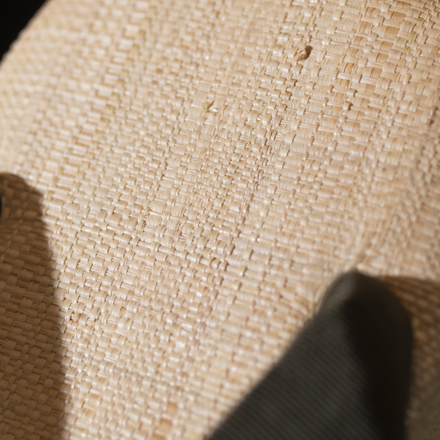 柔軟性を持ち、通気性に富むこのラフィアは、夏快適に使用するには最適なマテリアル。
