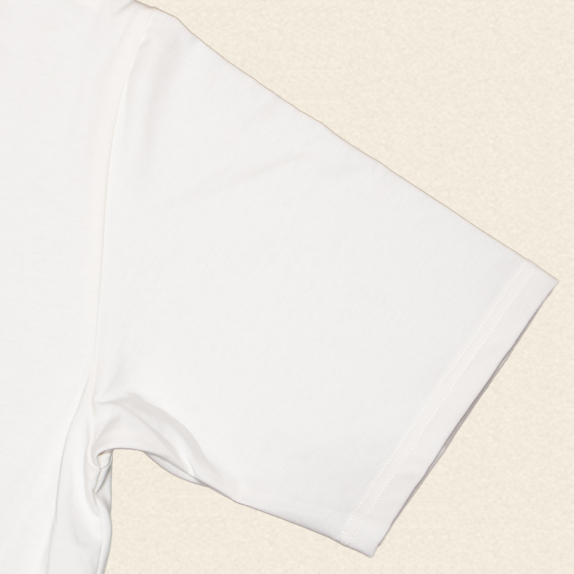 コットン100%とは思えない、シルクのような肌触りと光沢感のあるTシャツ。