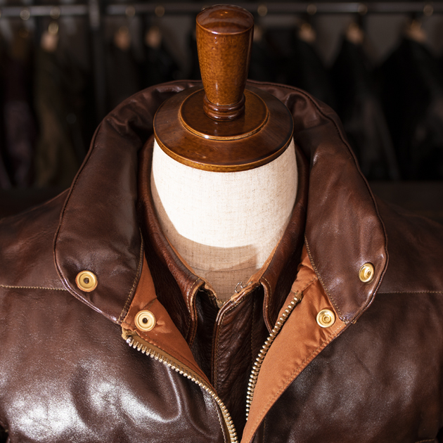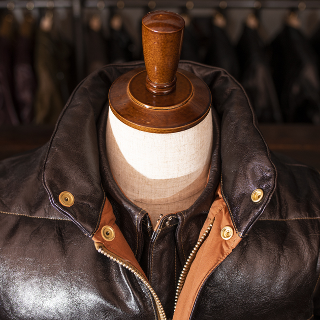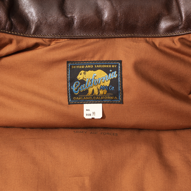 そこで、今回の別注モデルは襟裏には共革を使用し、ライニングにはA-2に用いられているコットンライニングと同様の生地・色を使用しました。