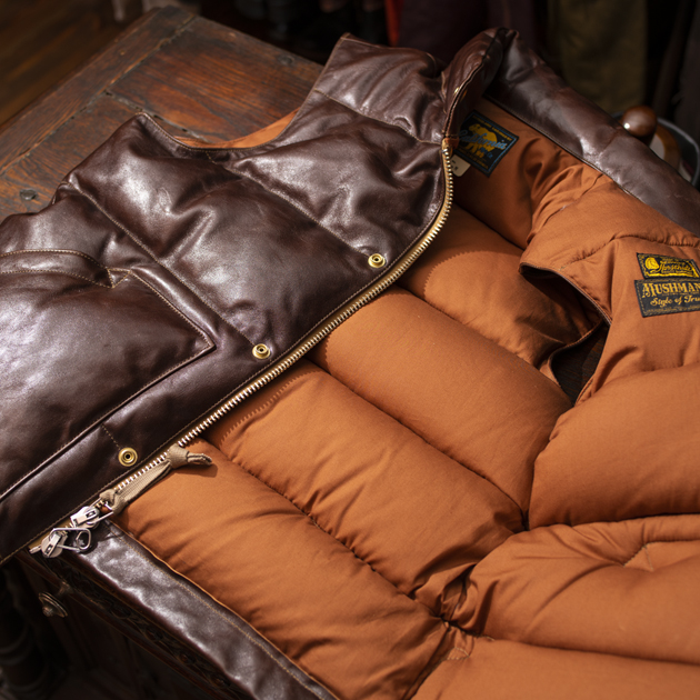こりゃいけないな。と、本来レザージャケットと合わせるべきダウンベストを今期別注モデルとしてリリースする事といたしました。